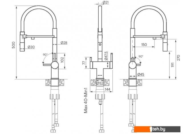 | Длина (вылет) излива | 150 мм |