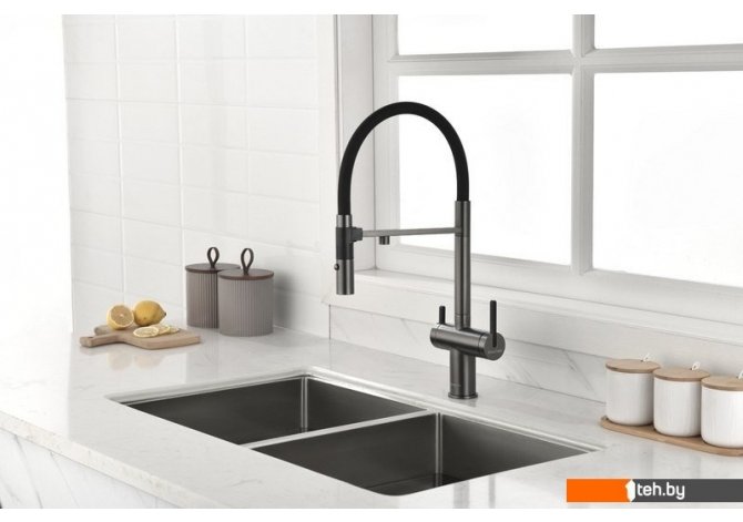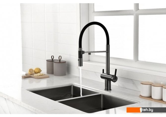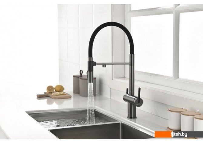 | Информация | Гибкий излив из силикона Обеспечивает оптимальный диапазон движения. Надёжная фиксация Крепление гибкого излива с помощью магнитного держателя. 2 режима подачи воды Мощная струя и деликатный душ. Отдельный аэратор для питьевой воды Питьевая и водопроводная вода не смешиваются. Ручка открытия питьевой воды Отдельное управление открытием потока питьевой воды. |