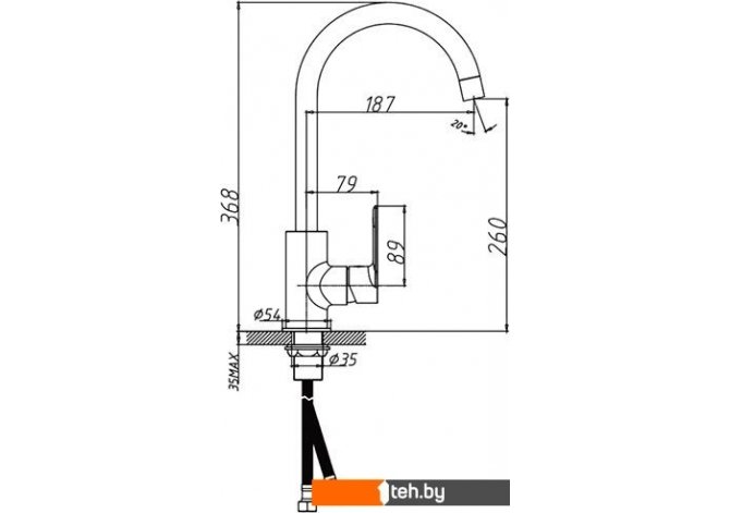 | Длина (вылет) излива | 187 мм |