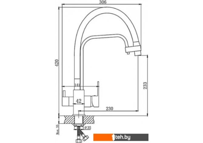 | Длина (вылет) излива | 230 мм |