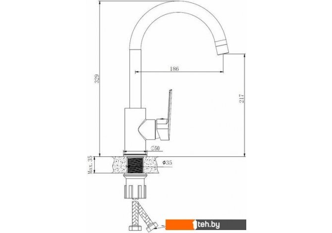 | Длина (вылет) излива | 186 мм |