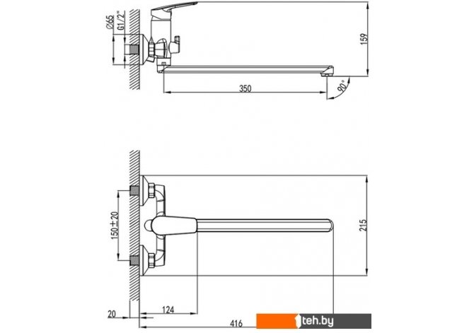 | Длина (вылет) излива | 350 мм |