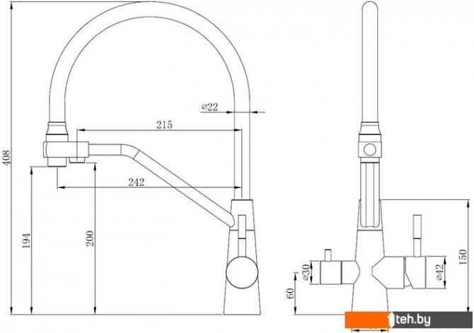 | Длина (вылет) излива | 242 мм |