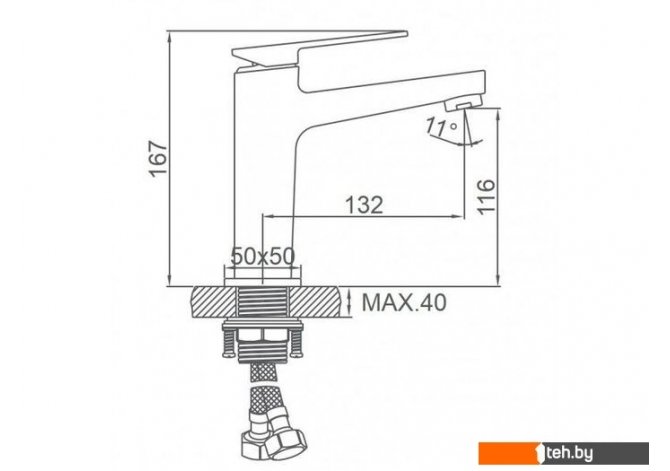 | Длина (вылет) излива | 132 мм |