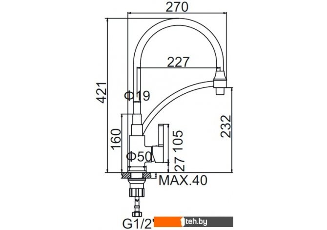 | Высота излива | 232 мм |