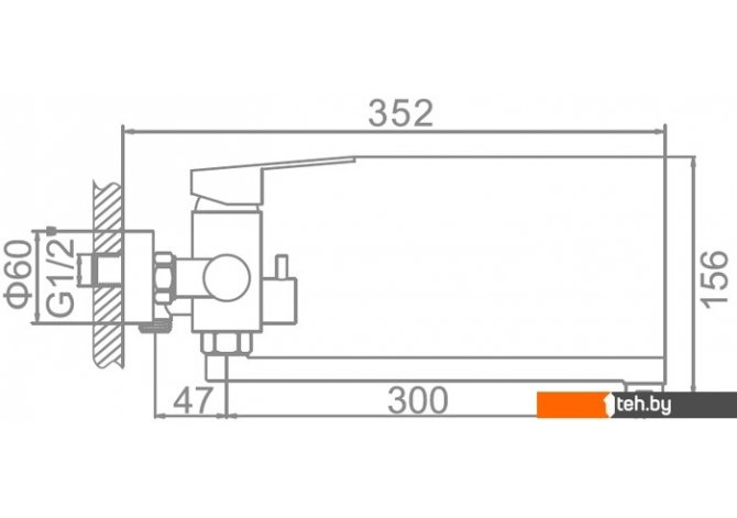 | Длина (вылет) излива | 300 мм |