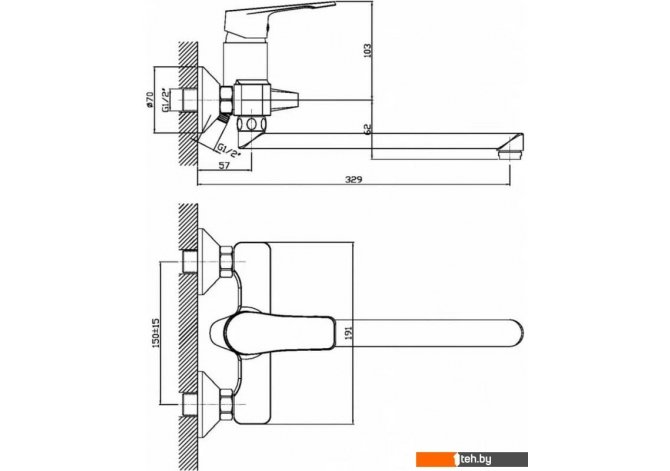 Длина (вылет) излива | 329 мм |
