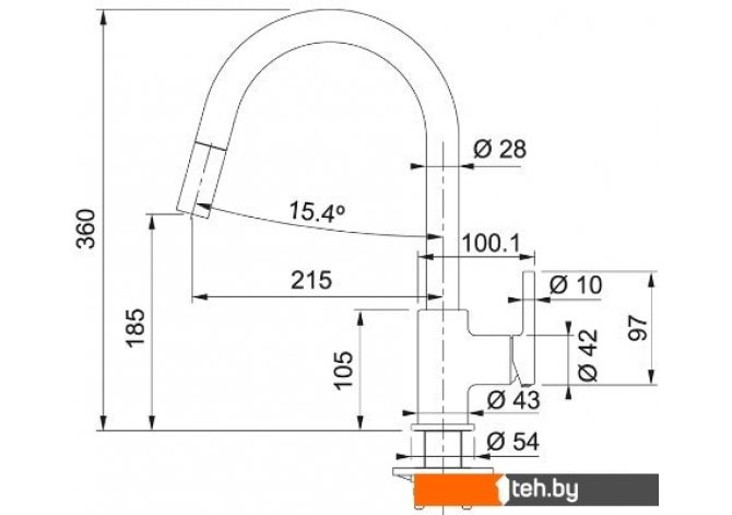 | Длина (вылет) излива | 215 мм |