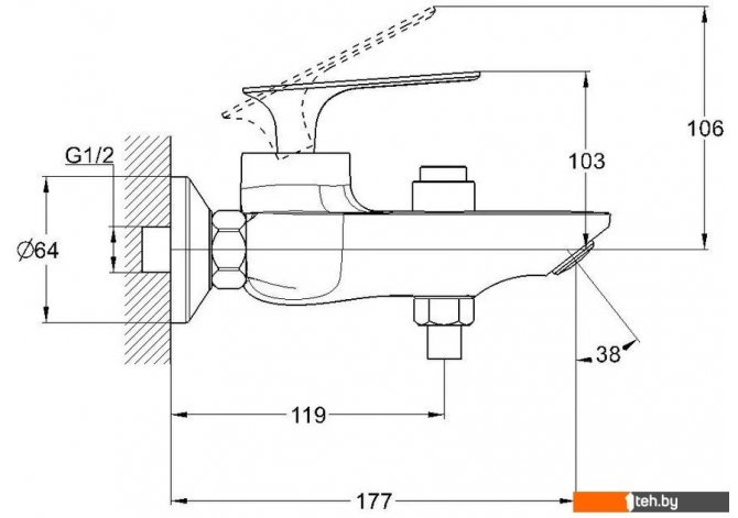| Длина (вылет) излива | 177 мм |