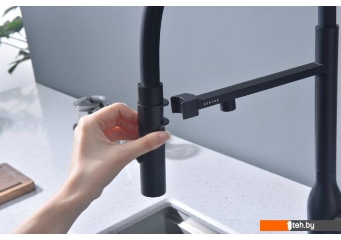 | Информация | Смеситель для кухни с гибким изливом, с возможностью подключения фильтра питьевой воды, поворотный излив. Материал изготовления: латунь. Исполнение: цвет: черный (цвет производителя: антрацит). Переключатель: ламинарный режим струи/режим струи SpeedClean автоматическое возвратное переключение на ламинарный режим струи. Смесители для кухни PAULMARK изготовлены из высококачественной латуни, не содержит свинца, не разрушается со временем, соответствует высочайшим европейским гигиеническим стандартам и безопасна для здоровья. Все смесители PAULMARK оснащены керамическими картриджами длительного срока эксплуатации, которые обладают низким уровнем шума, плавностью хода, устойчивостью к высокому давлению и отличаются чрезывачйной прочностью керамических дисков (до 100 000 циклов). Все смесители оснащены аэраторами от лучших европейских производителей. |