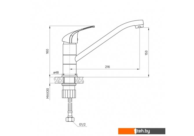 | Длина (вылет) излива | 216 мм |