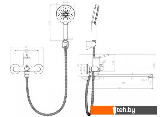 | Длина (вылет) излива | 358 мм |