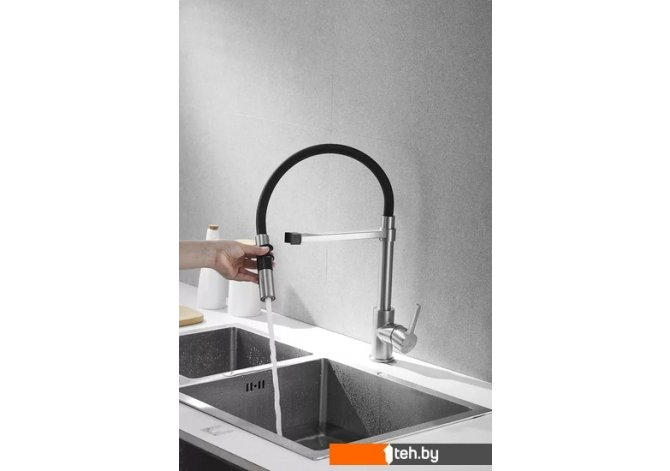 | Информация | Смеситель для кухни Rose R133L, гибкий излив, магнит вставка, сатин |