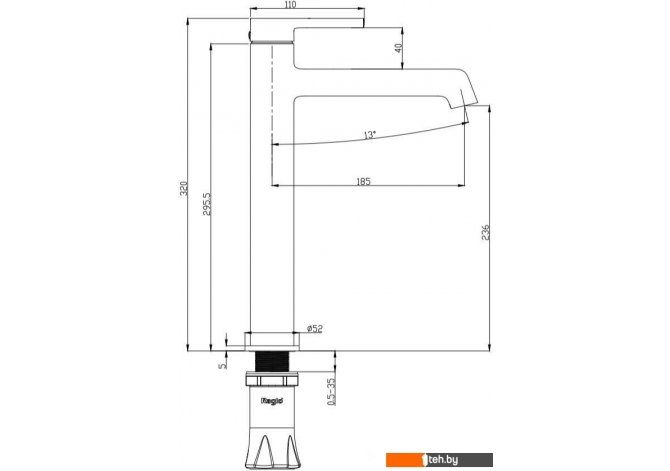 | Длина (вылет) излива | 185 мм |