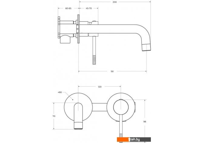 | Длина (вылет) излива | 191 мм |