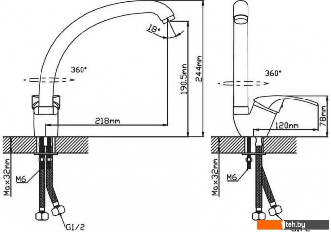 | Поворотный излив | Да 360 ° |