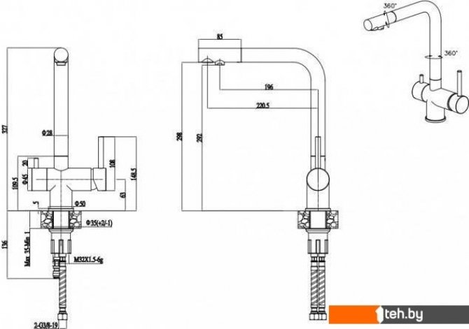 | Длина (вылет) излива | 196 — 220.5 мм |
