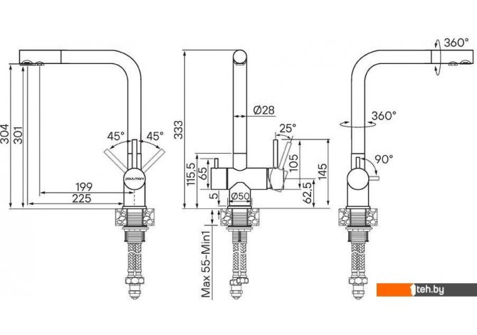 | Высота излива | 298 мм |