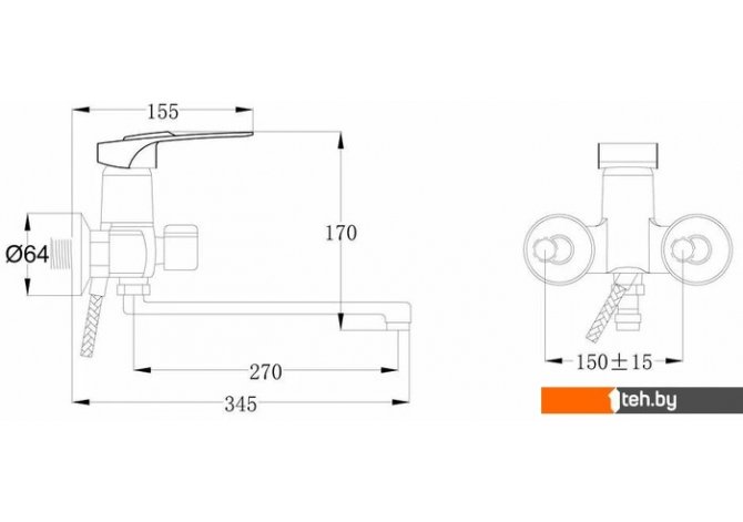 | Длина (вылет) излива | 270 мм |