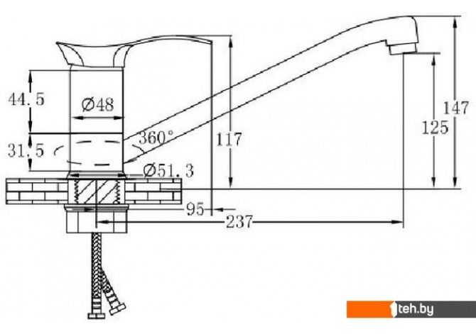 | Длина (вылет) излива | 237 мм |