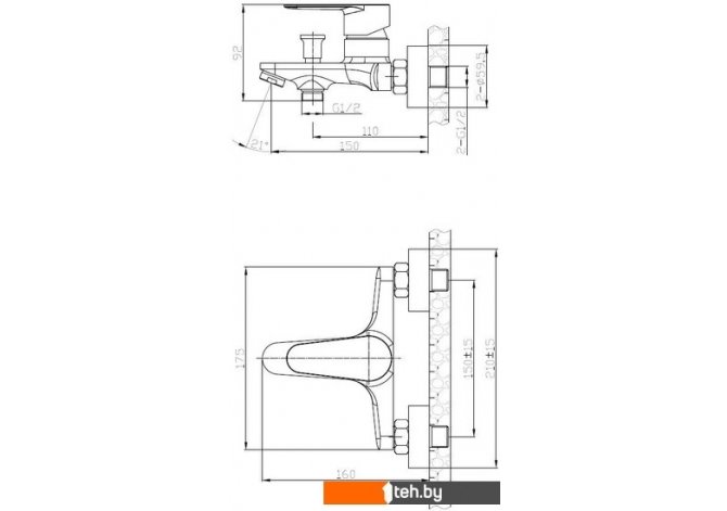 | Длина (вылет) излива | 150 мм |