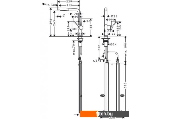 | Высота излива | 265 мм |