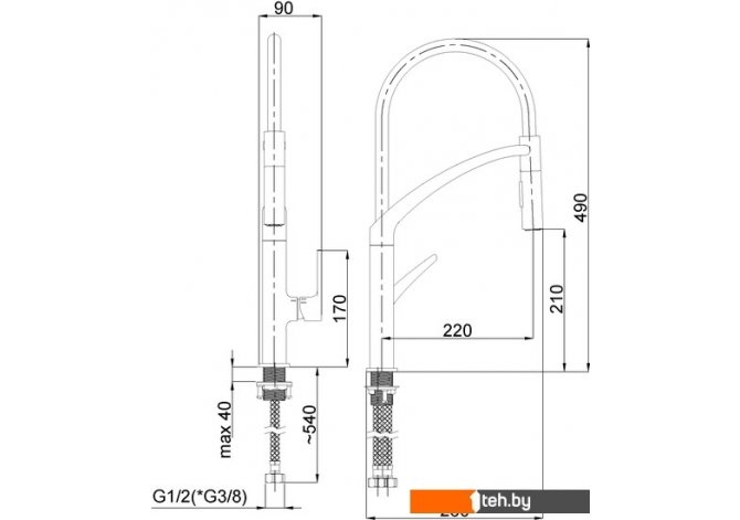 | Выдвижной/гибкий излив | Да с аэратором (гибкий шланг) |