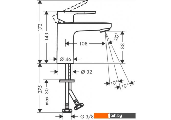 | Длина (вылет) излива | 108 мм |