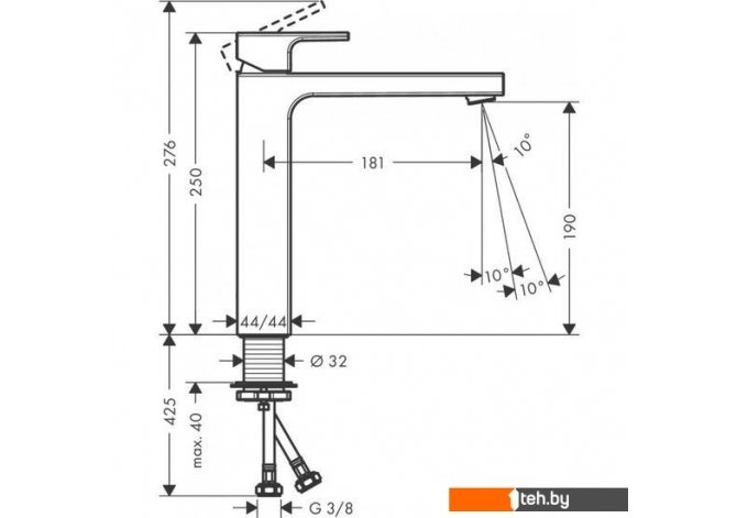 | Длина (вылет) излива | 181 мм |
