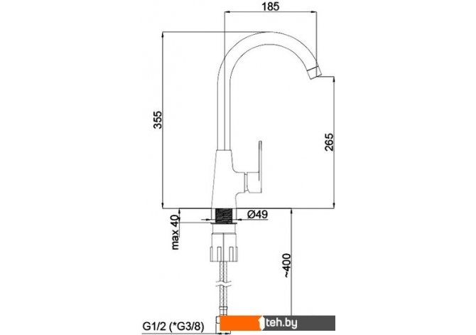 | Длина (вылет) излива | 185 мм |