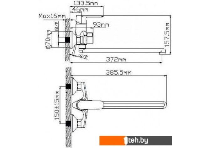 | Длина (вылет) излива | 372 мм |