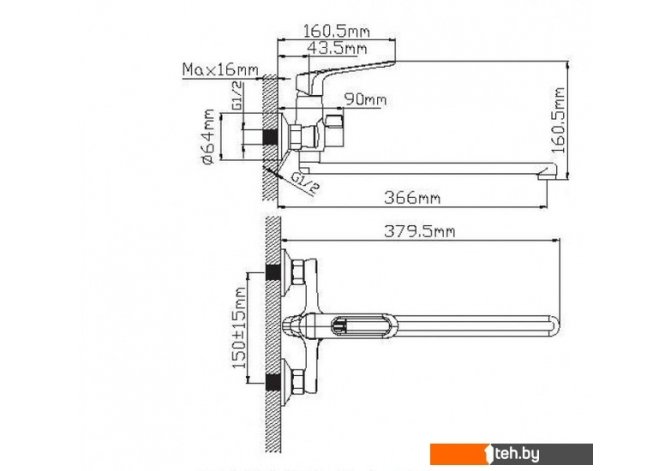 | Длина (вылет) излива | 366 мм |