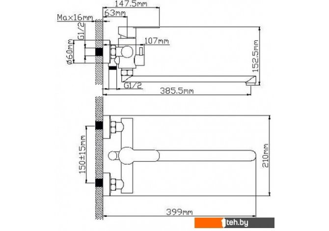 | Длина (вылет) излива | 385.5 мм |