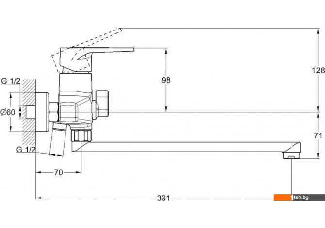 Длина (вылет) излива | 391 мм |