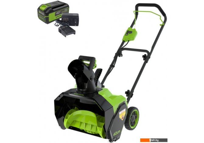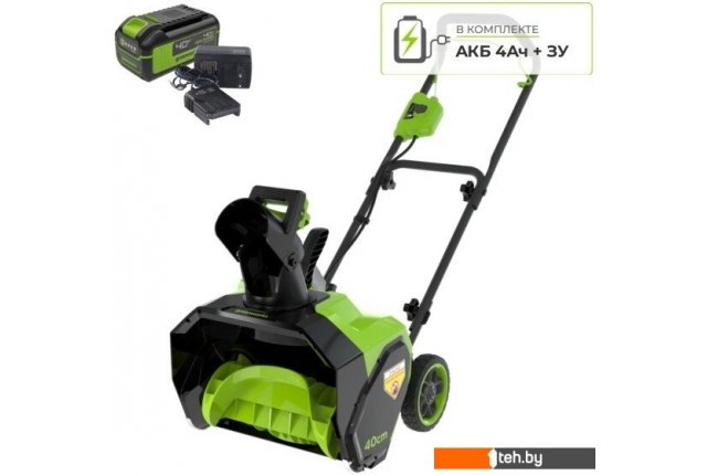 | Комплектация | - Снегоуборщик аккумуляторный 40V G40ST40 (арт.2603607); - Аккумулятор Greenworks 40V, 4 A/ч; - Зарядное устройство Greenworks 40V, 2А; - Руководство по эксплуатации; - Гарантийный талон. |
