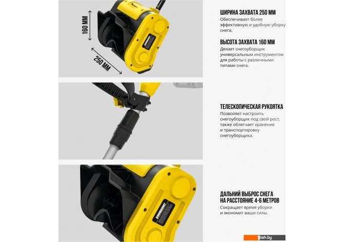 | Информация | - Снегоуборочная лопата аккумуляторная KST 18-250-1 идеально подходит для уборки снега с придомовых территорий, садов, тротуаров и пешеходных зон. - Ширина захвата 250 мм: обеспечивает более эффективную и удобную уборку снега. - Высота захвата 160 мм: делает снегоуборщик универсальным инструментом для работы с различными типами снега. - Защита от перегрузки: обеспечивает долгий срок службы инструмента. - Телескопическая рукоятка: позволяет настроить снегоуборщик под свой рост, также облегчает хранение и транспортировку снегоуборщика. - Дальний выброс снега на расстояние 4-6 метров: сокращает время уборки и экономит ваши силы. - Гарантия: гарантийный срок на изделие составляет 12 мес. |
