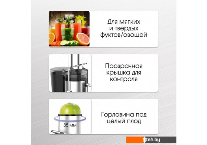 Если хотите купить соковыжималка Zigmund & Shtain EJ-756 то следует уточнить все параметры и габариты модели перед покупкой. Представленые характеристики на сайте 1teh.by могут отличаться от действительных или указанных производителем. Описание, фото товара и технические характеристики представлены для справки.