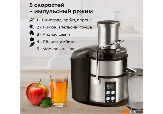 | Информация | Откройте для себя мощь центробежной соковыжималки GALAXY LINE GL 0808 с производительностью 1500 Вт. Этот надежный прибор выполнен из прочной нержавеющей стали и оснащен мощным медным двигателем, который обеспечивает эффективную и быструю обработку фруктов и овощей. Широкая горловина диаметром 85 мм позволяет загружать целые фрукты без предварительной нарезки, что экономит ваше время и усилия. Соковыжималка предлагает пять скоростей работы и импульсный режим, делая ее идеальной для различных типов фруктов и овощей. Компактная и стильная, она прекрасно впишется в любой интерьер кухни и станет вашим незаменимым помощником в создании здоровых и вкусных напитков. Объем контейнера для сока составляет 1,1 л, а для жмыха — 2 л, что позволяет готовить большое количество сока за один раз. Благодаря системе защиты от перегрева и функции "Капля-стоп", соковыжималка GALAXY LINE GL 0808 гарантирует безопасность и чистоту при использовании. Прибор включает в себя книгу рецептов, которая поможет вам разнообразить ваш рацион и вдохновит на новые кулинарные открытия. |
