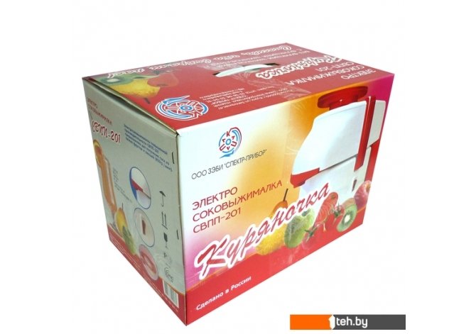 Фотографии, описание и технические характеристики модели соковыжималки Спектр-Прибор Куряночка СВПП-201 (с шинковкой) взяты из открытых источников, официального сайта производителя или представительства Спектр-Прибор в Республике Беларусь.