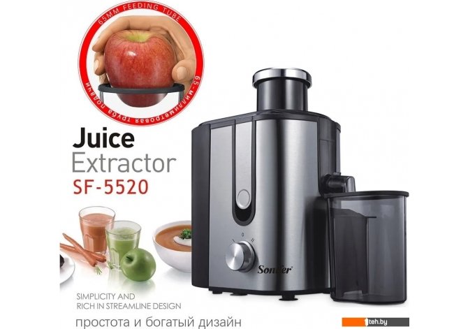 Фотографии, описание и технические характеристики модели соковыжималки Sonifer SF-5520 взяты из открытых источников, официального сайта производителя или представительства Sonifer в Республике Беларусь.