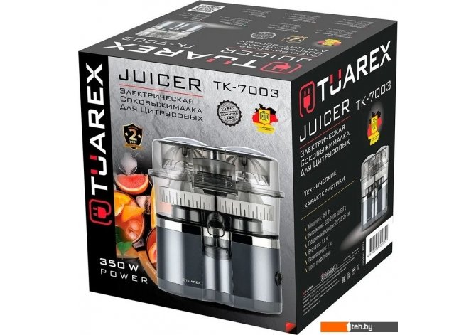 Фотографии, описание и технические характеристики модели соковыжималки Tuarex TK-7003 взяты из открытых источников, официального сайта производителя или представительства Tuarex в Республике Беларусь.