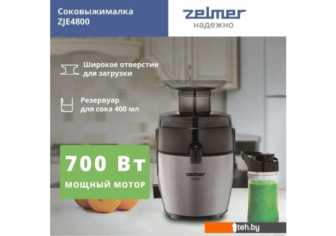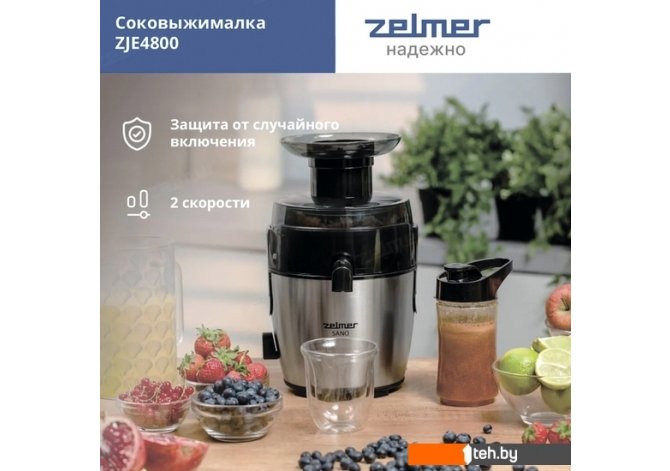 Фотографии, описание и технические характеристики модели соковыжималки Zelmer ZJE4800 взяты из открытых источников, официального сайта производителя или представительства Zelmer в Республике Беларусь.