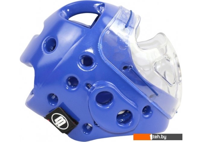 | Информация | ? Шлем для тхэквондо с маской - сверхлегкий, профессиональный, цельнолитой, эргономичной формы с закрытым верхом. ? Пластиковая маска обеспечивает максимальную защиту лица спортсмена и крепится к шлему с помощью шнурка, при желании ее можно снять. ? Усиленная зона ушных раковин. ? Лобная часть шлема и подбородка усилена. ? Теменная и височная зоны с вентиляционными отверстиями. ? Крепление на затылке эластичным ремнем с липучкой. |