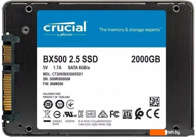 Фотографии, описание и технические характеристики модели SSD винчестера Crucial BX500 2TB CT2000BX500SSD1 взяты из открытых источников, официального сайта производителя или представительства Crucial в Республике Беларусь.