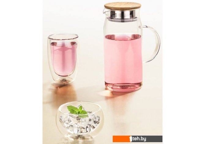 | Информация | Произведен из специального жаропрочного стекла, которое выдерживает высокие температуры и прямой контакт с огнем. Такой кувшин отлично сохраняет холод, а также его можно быстро подогреть прямо на плите. Сверху кувшина крышка из натурального бамбука. |
