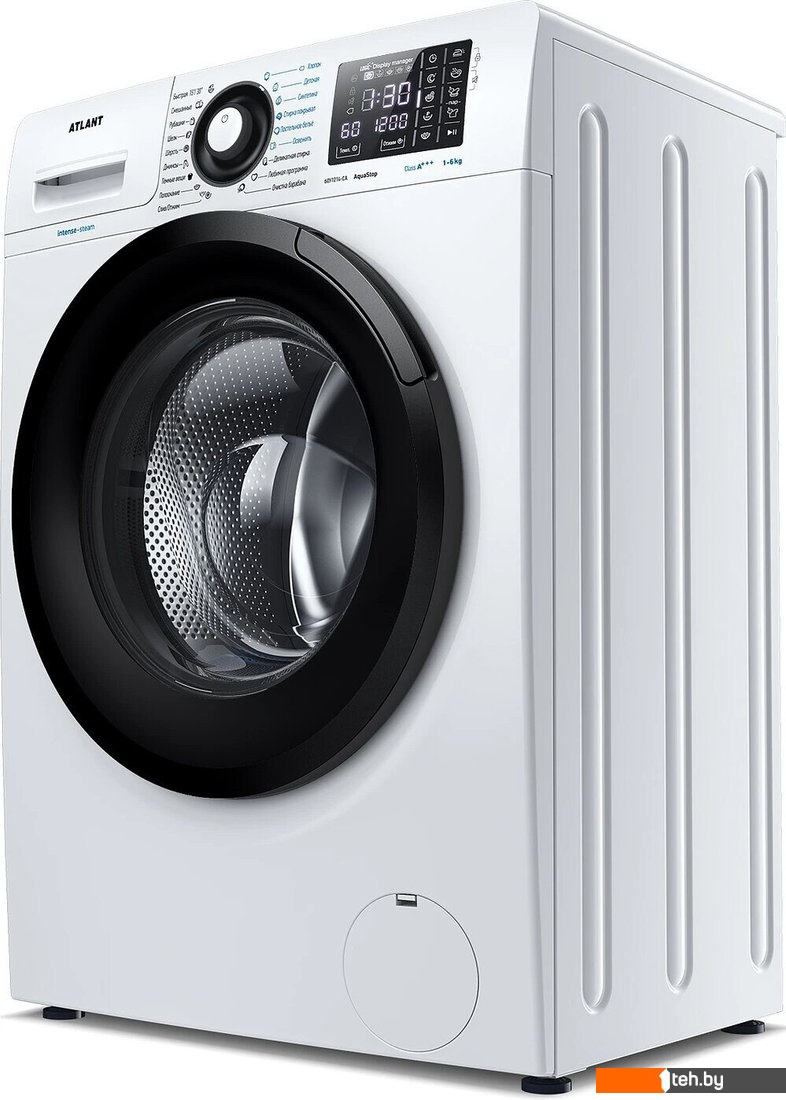 Информация | Стиральная машина ATLANT серии INTENSE STEAM с технологией обработки белья паром освежает, дезинфицирует и разглаживает белье благодаря новым режимам, включая программу «Освежить» и паровые опции «Стирка с паром» и «Обработка паром». Сенсорные технологии позволяют легко выбирать функции и программы, а светодиодные индикаторы и сегментный дисплей, расположенные под углом, облегчают восприятие информации. Просторный барабан вмещает значительное количество белья и предлагает множество программ для различных типов тканей. Антибактериальная защита ABG Technology подавляет размножение опасных микроорганизмов на уплотнителе, гребне и лотке для моющих средств. Также предусмотрена система защиты от протечек AQUA-STOP, обеспечивающая защиту как наливного шланга, так и корпуса. Увеличенная гарантия на двигатель составляет 5 лет. |
