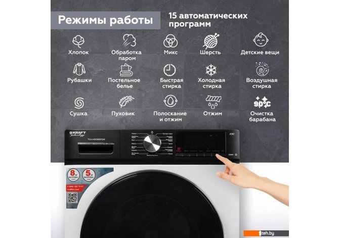 Фотографии, описание и технические характеристики модели стиральной машины Kraft TCH-HDD8587SW взяты из открытых источников, официального сайта производителя или представительства Kraft в Республике Беларусь.