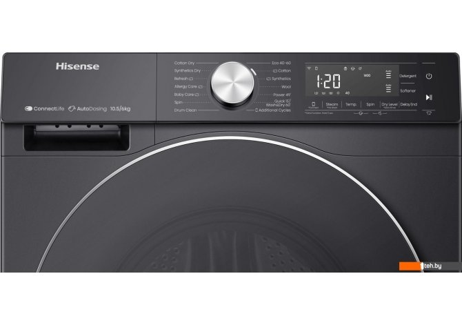| Информация | - Универсальное решение 2 в 1 Стирально-сушильная машина Hisense совмещает возможность стирки и сушки белья, что позволяет эргономично использовать пространство в вашем доме. По окончании программы стирки сушка запускается автоматически или включается отдельно — все зависит от вашего желания. Максимальная загрузка белья для стирки составляет 10.5 кг, а для сушки — 6 кг. - Washer & Dryer Одна заправка раз в месяц Стиральная машина 5S автоматически подберет точное количество моющего средства или умягчителя с учетом веса одежды. Емкость с моющим средством рассчитана максимум на 24 цикла стирки, поэтому доливать его придется примерно один раз в месяц* - Auto Dosing Удобство Добавляйте средство для стирки один раз в месяц - Точность Самостоятельно определит нужное количество моющего средства - Умное оповещение Отправит уведомление, как только закончится моющее средство - Управление по Wi-Fi Просто выберете тип ткани, цвет, степень загрязнения и вид пятен в приложении ConnectLife, а стиральная машина постирает вашу одежду с идеальным сочетанием нужной температуры, времени и воды. - Smart Wizard На страже вашего здоровья Дополнительная обработка паром, в качестве предварительной программы стирки, удаляет с одежды подавляющее большинство микробов и бактерий. - Steam Быстрые программы для небольшой загрузки Стиральная машина Hisense, не только сокращает время и расходы на стирку, но и предоставляет несколько программ быстрой стирки. Вы можете выбрать программы 49 мин/15 мин, которые идеально подходят для половинной загрузки/1 кг белья. - Quick Wash+ • Быстрая 15? • Супер 49? - С заботой о чистоте Такие функции как Очистка барабана в комплекте с антибактериальной резиновой манжетой и стерильной кюветой обеспечивают надежную защиту от бактерий. - Hygiene Guard Высокая производительность – низкое энергопотребление Благодаря высокому уровню энергоэффективности получите все преимущества стиральной и сушильной машины, используя значительно меньше энергии. Это означает снижение счетов за электричество и шаг к защите окружающей среды. - |