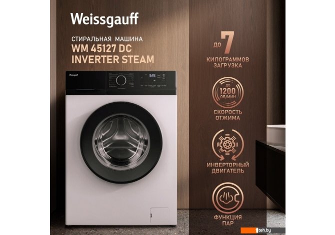 Фотографии, описание и технические характеристики модели стиральной машины Weissgauff WM 45127 DC Inverter Steam взяты из открытых источников, официального сайта производителя или представительства Weissgauff в Республике Беларусь.