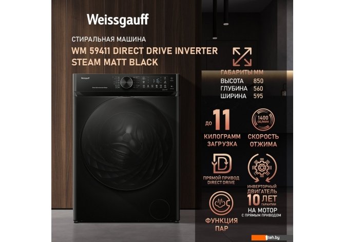 Фотографии, описание и технические характеристики модели стиральной машины Weissgauff WM 59411 Direct Drive Inverter Steam Matt Black взяты из открытых источников, официального сайта производителя или представительства Weissgauff в Республике Беларусь.